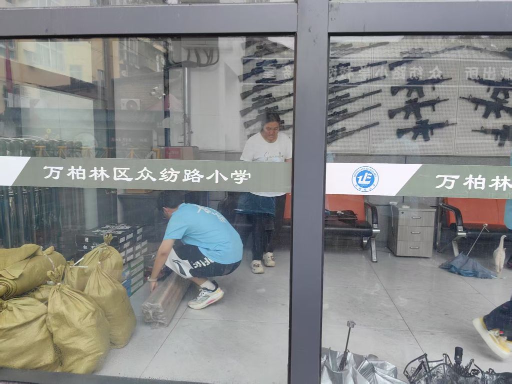 雨水敲打着车窗,志愿者们无暇顾及自身淋湿,心中牵挂的是校园安全。载满编织袋、应急照明灯等防汛物资的车辆稳稳停靠在纺织苑小公司门。卸货、搬运、清点交接,每一个环节都在雨中高效有序地进行。汗水与雨水交织,浸透了衣衫,却未能模糊志愿者们专注的神情。当校园工作者从志愿者手中郑重接过最后一件物资,一句“太及时了,谢谢你们!”让所有辛劳瞬间化为值得。“想到孩子们和校园能多一分保障,衣服湿透也值得。”一位志愿者抹去脸上的雨水,笑容真挚而明亮。这些带着雨滴温度的物资,为校园筑起了一道看得见的“安心堤”。