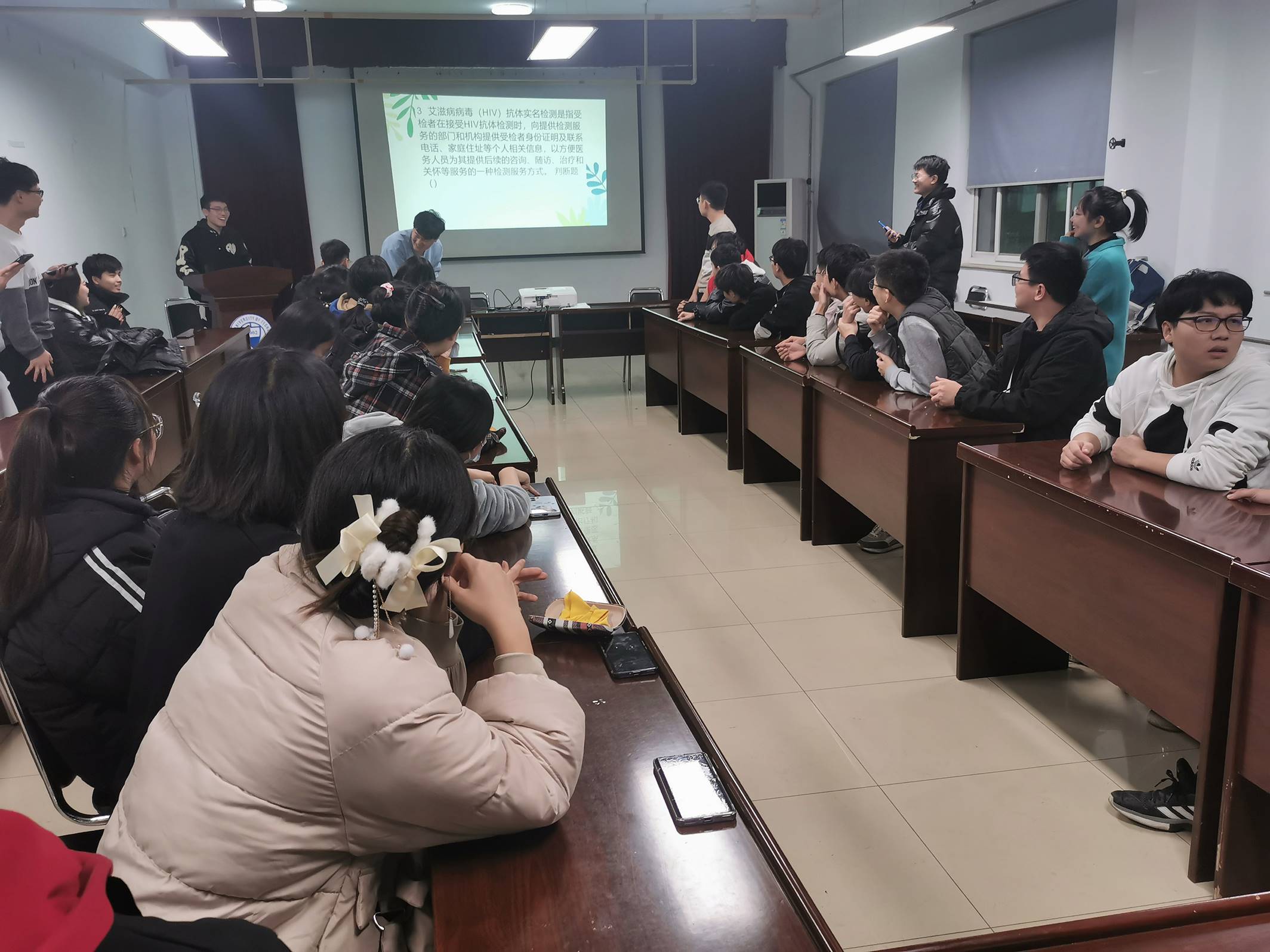 初赛于12月9日在机械馆2005教室举办,通过线下笔试答题,共有6支队伍突出重围,杀进决赛。笔试题目经过层层筛选,有效检验了同学们对艾滋病相关知识的了解程度,从答题结果来看,很多同学们对防艾知识有了一定了解,但是对于更加深入和有针对性的问题还是有所欠缺。