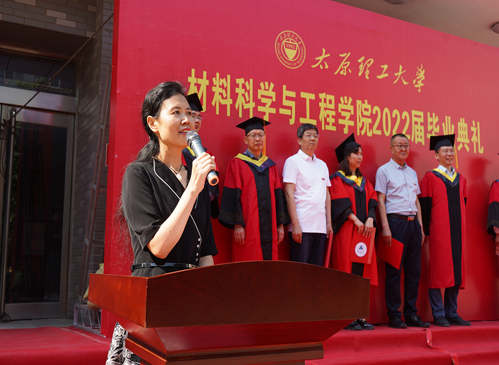 张忠璞致辞,叮嘱同学们要牢记并践行习近平总书记对老员工“立大志、明大德、成大才、担大任”的勉励。他指出,在民族复兴的伟大征程中,大家都是历史的见证者和伟大时代的创造者、开拓者、奋进者。毕业不是终点,而是人生更高的起点。他鼓励同学们,要发扬“求实创新”的校训,带着太理材料人特有的气质,以久久为功的韧劲、厚积薄发的自信,铸就奋进的人生,与这个伟大的时代同向同行、同频共振,用奋斗谱写出最绚丽的青春篇章!