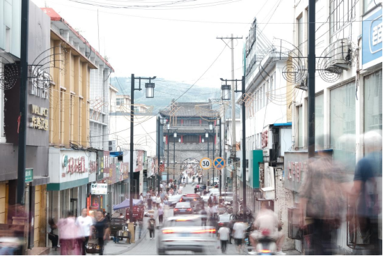 慢慢走到了主街,钟灵敏秀的牌坊下是坐在台阶上的大爷大妈,带的孩子多是八九岁的样子。雅韵宏德的戏台里,孩子们稚嫩的在打羽毛球。牌坊正对着主街,路的尽头是城楼门里络绎不绝,一途的步行街是不紧不慢的本地人。