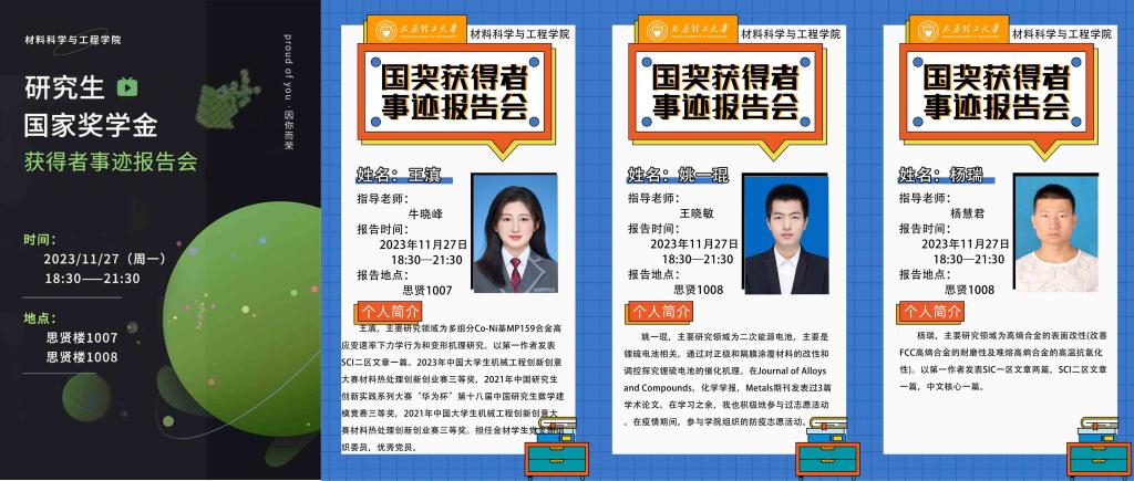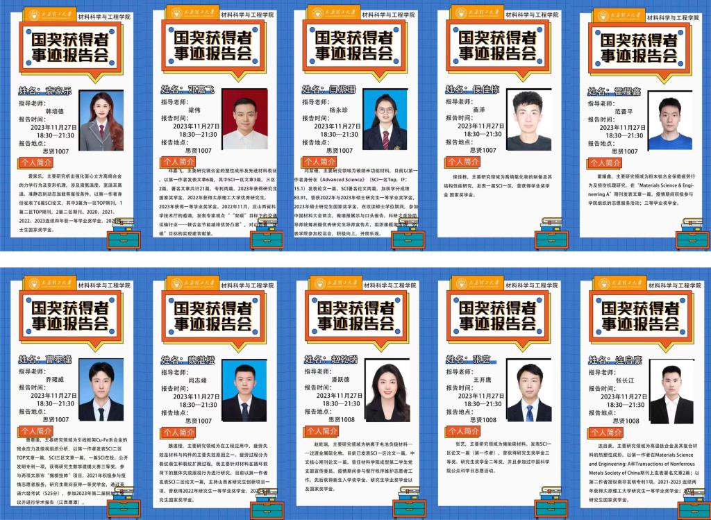 本次研究生国家奖学金获得者事迹报告会的成功举办,不仅充分展示了emc易倍研究生在学术研究领域的卓越成果,为公司人才培养注入了新的活力,更是拉近了榜样与同学们之间的距离,为同学们在生活和学习中遇到的问题提供了可参考的成功经验。望全体材料学子以优秀学子为榜样,不忘初心,砥砺奋进,为科技强国贡献属于太理人的青春力量!
