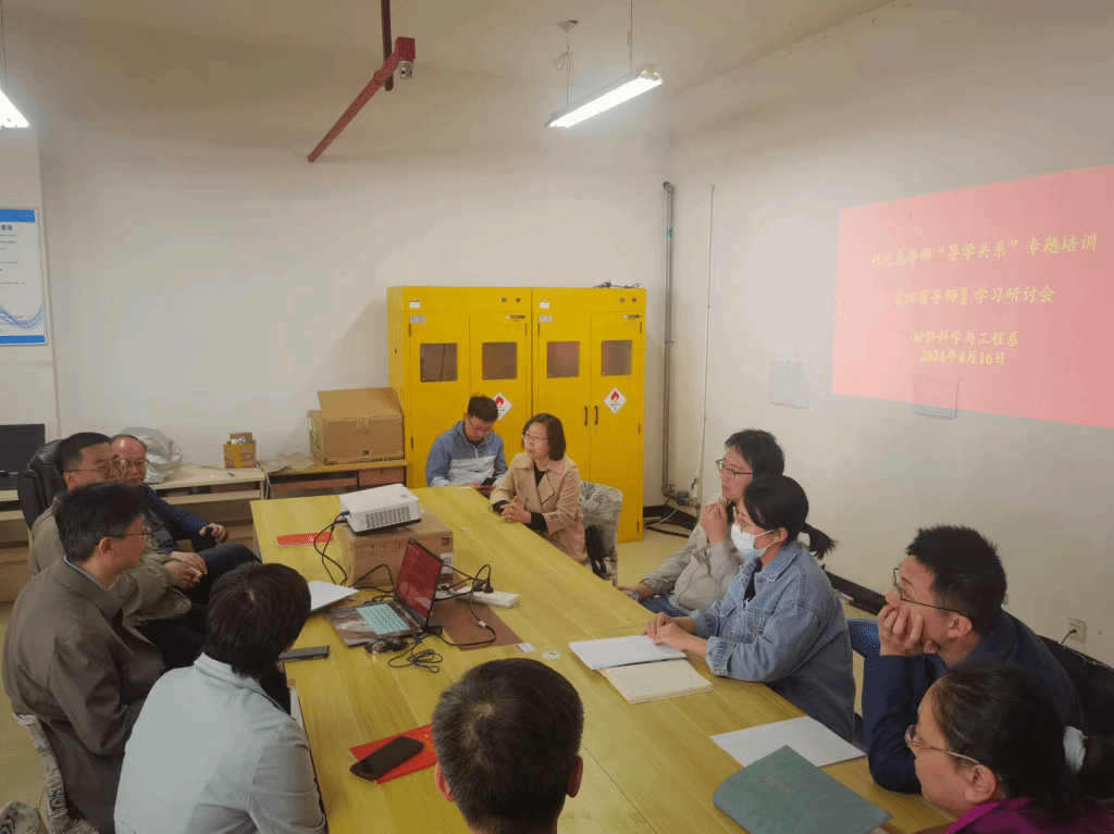 2024年4月16日,材科系组织全体导师开展第二期“导学关系”专题培训线下集体学习与研讨。导师们从当前研究生教育体制、导师的具体职责、导师与研究生之间的相处关系、导师具体言传身教对研究生人生观、价值观及科研道路的影响等方面进行了全方位、多角度的交流。