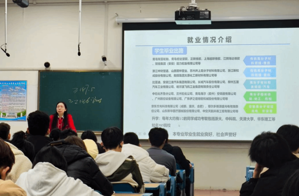 高分子材料与工程专业系副主任贾兰副教授、公司督导组组长卫爱丽副教授,为2024级本科生进行了专业宣讲。首先由卫爱丽老师为同学进行了高分子材料与工程专业解说,从专业的培养方案、专业的课程设置方面告诉同学们高分子专业要学什么,通过近几年毕业生详细的就业与考研统计情况让同学们对将来毕业有什么样的出路有了清晰的了解。接下来贾兰老师介绍了高分子材料学科的发展历史以及高分子材料的前沿应用,让同学们了解了高分子材料在整个社会与经济发展中的重要作用,激励同学们认真学习,勇攀高峰。并且告知了同学公司的专业导师计划,专业课教师都会为同学学习与生活中的问题解答疑惑。最后研二的研究生白晋分享了自身的求学经历以及研究生阶段研究方向,以自身的经验告诉同学们在未来的考研准备过程中如何根据自己的目标制定计划以及一些注意的方面。宣讲会过程中同学们都认真倾听,会后同学表示受益匪浅,对老员工活不再那么迷茫。