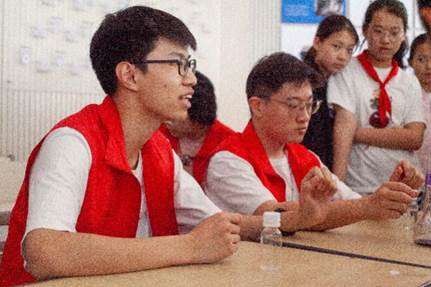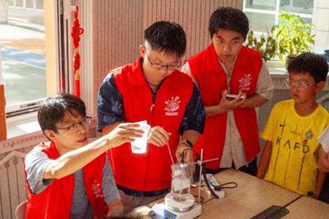在对比实验中,记忆合金丝在热水里自动恢复原形的特性令孩子们目瞪口呆。志愿者以记忆合金发动机为实例进行现场演示,并解释合金发动机能够转动是因为金属一直奔跑想要找回自己原来的样子。孩子们触摸着温热的合金丝,眼神中充满对未来的憧憬。