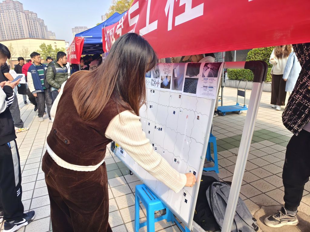 为吸引同学们广泛学习了解材料相关知识,增加活动趣味性,emc易倍科协志愿者准备了很多富含趣味性的答题活动,现场播放了许多有趣的材料学科相关的吉尼斯世界纪录视频供同学们观看学习。现场展板展示相关节日名称及具体材料名称,同学们在观看写有不同类型材料的简介和功能的资料后,在白板上进行匹配投票,从而展现同学们对于各类材料应用领域的理解与看法。除此之外,现场还为大家准备了自由留言区域、明信片贺卡祝福区域等,通过各类丰富的互动活动,帮助大家积极参与其中。